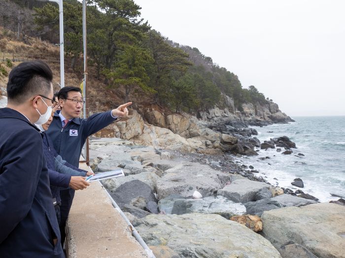어명소 국토교통부 제2차관이 24일 가덕도신공항 건설사업 예정지를 방문해 현장을 살폈다.ⓒ국토교통부