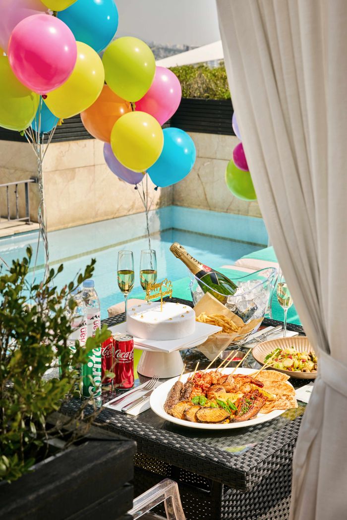 카바나는 형형색색의 헬륨풍선으로 꾸며지고, 낭만적인 파티 분위기를 살리는 홀케이크와 모엣 샹동 임페리얼 샴페인이 제공된다. 여기에 바비큐 꼬치 플래터, 과일 플래터, 감자튀김, 소프트 드링크 등 파티푸드도 포함된다. 특별한 메시지를 전하고 싶을 경우 레터링 서비스가 유료로 제공된다.