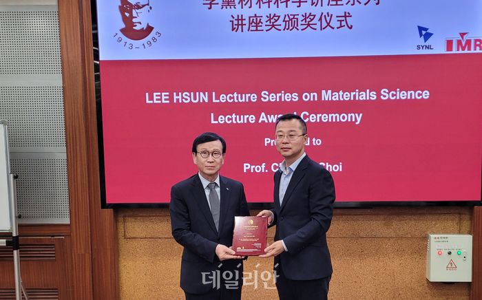 최 원장은 지난 13일 중국 선양에 위치한 중국과학원 금속연구소에서 리슌상을 수상하고, 나노입자 합성과 영구자석 소재 기반의 재료과학 발전을 주제로 강연했다.