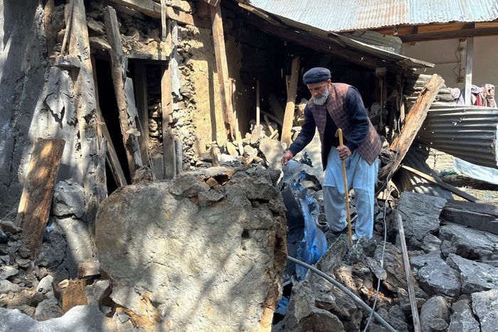 지난 10일(현지 시간) 파키스탄령 카슈미르의 샤코트 마을에서 마을 주민이 인도군의 야간 폭격으로 훼손된 집을 살펴보고 있다. ⓒAP/뉴시스
