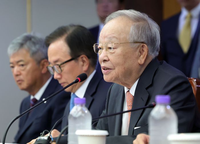 손경식 한국경영자총협회(경총) 회장이 14일 오후 서울 마포구 경총에서 열린 더불어민주당 환노위-경제 6단체 노동정책(노동조합법 개정안) 간담회에서 발언하고 있다. ⓒ뉴시스