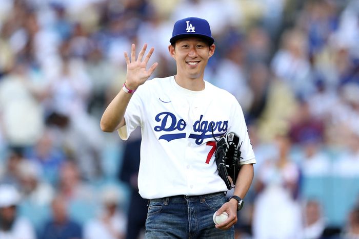 LA 다저스 시구자로 나섰던 손흥민. ⓒ AFP/연합뉴스