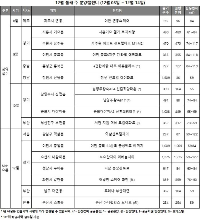 모델하우스 오픈은 7곳에 진행될 예정이다. 당첨자 발표는 13곳, 정당 계약은 10곳에서 이뤄진다.