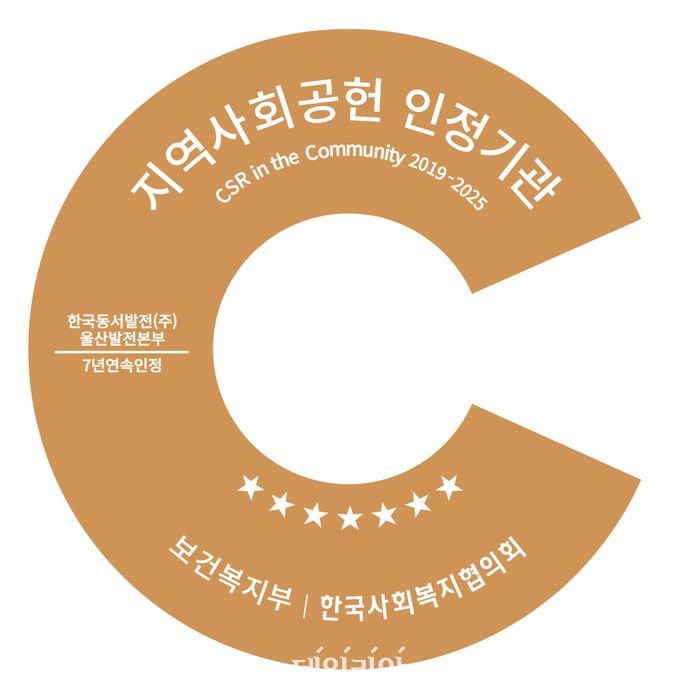 한국동서발전 7년 연속 지역사회공헌 인정기관 인증마크.ⓒ동서발전
