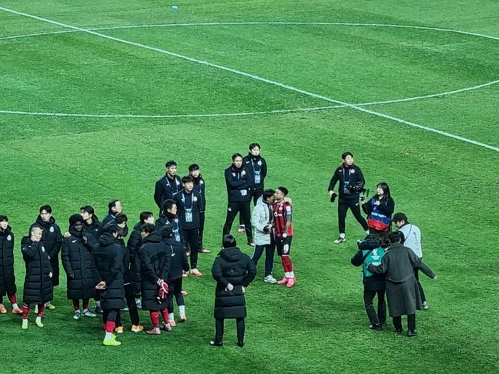 이어 김기동 감독과 뜨거운 포옹을 나눈 린가드는 절친 김진수로부터 꽃다발을 전달받았다. FC서울 서포터스 ‘수호신’도 의미있는 선물을 전달했다.