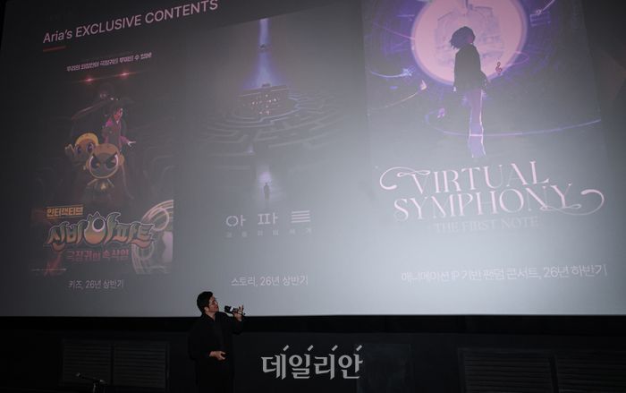 9일 서울 용산구 아이파크몰 CGV에서 열린 ‘인터랙티브 시네마’ 라인업 쇼케이스에서 아리아 스튜디오와 CJ CGV는 관객이 직접 영화 스토리에 개입하는 형식의 작품을 3편을 소개했다. 애니메이션 ‘인터랙티브 신비아파트: 극장귀의 속삭임’, 버추얼 아이돌 문보나를 내세운 ‘버추얼 심포니: 더 퍼스트 노트’, SF 미스터리 스릴러 ‘아파트: 리플리의 세계’가 그 주인공이다.