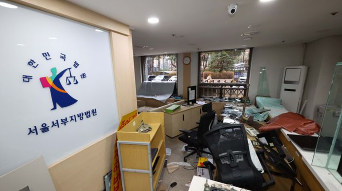 지난 1월19일 윤석열 전 대통령 지지자들의 폭력 사태가 벌어진 서울 마포구 서울서부지방법원.ⓒ연합뉴스