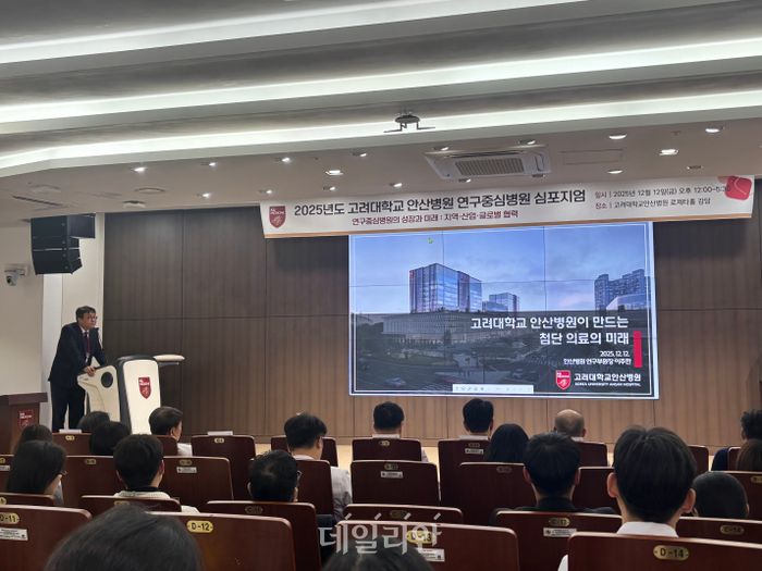 12일 고려대 안산병원은 별관 지하 1층 로제타홀 강당에서 ‘연구중심병원의 성장과 미래 : 지역·산업·글로벌 협력’을 주제로 심포지엄을 개최하고 중장기 연구혁신 전략을 발표했다.