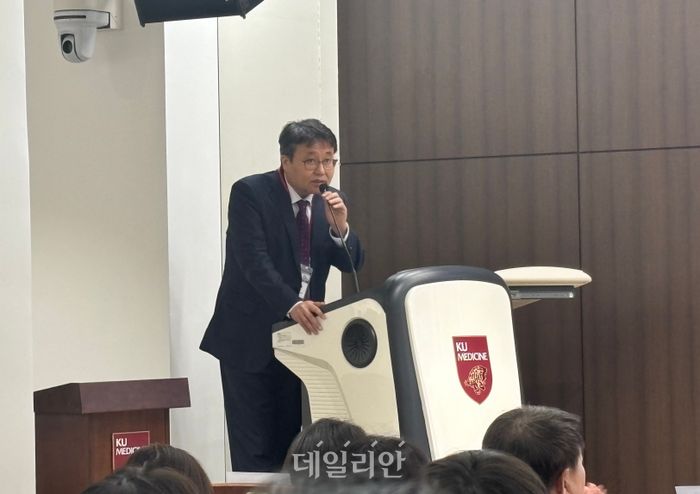 이주한 고려대 안산병원 연구부원장이 12일 병원에서 열린 심포지엄에서 주제발표를 진행하고 있다. ⓒ데일리안 김효경 기자