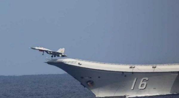 일본 방위성이 7일 공개한 랴오닝호에서 J-15가 이륙하는 모습. ⓒNHK/뉴시스