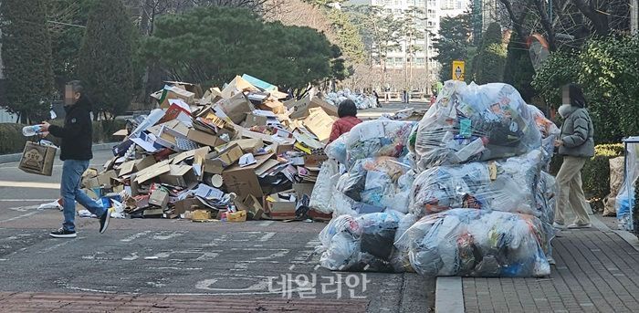 지난해 설 명절 연휴 마지막 날 서울 시내의 한 아파트 단지에서 재활용 쓰레기가 쌓여있다. ⓒ연합뉴스