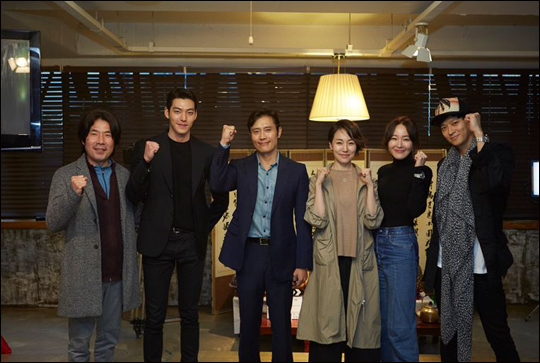 22일 배급사 CJ엔터테인먼트가 공개한 사진에는 조의석 감독을 비롯해 이병헌, 강동원, 김우빈, 엄지원, 오달수, 진경의 모습이 담겨 있다.